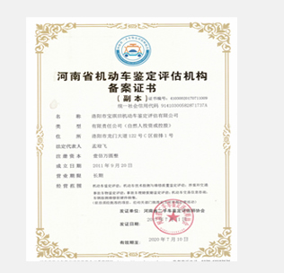 河南寶琪車(chē)輛鑒定評(píng)估技術(shù)有限公司經(jīng)商務(wù)部正式備案,河南省商務(wù)廳批準(zhǔn)設(shè)立,于2011年9月在洛陽(yáng)市工商局登記成立。并取得了商務(wù)部頒發(fā)的執(zhí)業(yè)許可證《中華人民共和國(guó)二手車(chē)鑒定評(píng)估機(jī)構(gòu)核準(zhǔn)證書(shū)》,取得了河南省二手車(chē)鑒定評(píng)估師協(xié)會(huì)頒發(fā)的《河南省機(jī)動(dòng)車(chē)鑒定評(píng)估機(jī)構(gòu)備案證書(shū)》,公司入冊(cè)河南省人民法院機(jī)動(dòng)車(chē)司法鑒定機(jī)構(gòu)名冊(cè)、洛陽(yáng)市人民政府公務(wù)車(chē)鑒定評(píng)估機(jī)構(gòu)名冊(cè),是面向全社會(huì)服務(wù)的獨(dú)立第三方機(jī)動(dòng)車(chē)鑒定評(píng)估機(jī)構(gòu)。