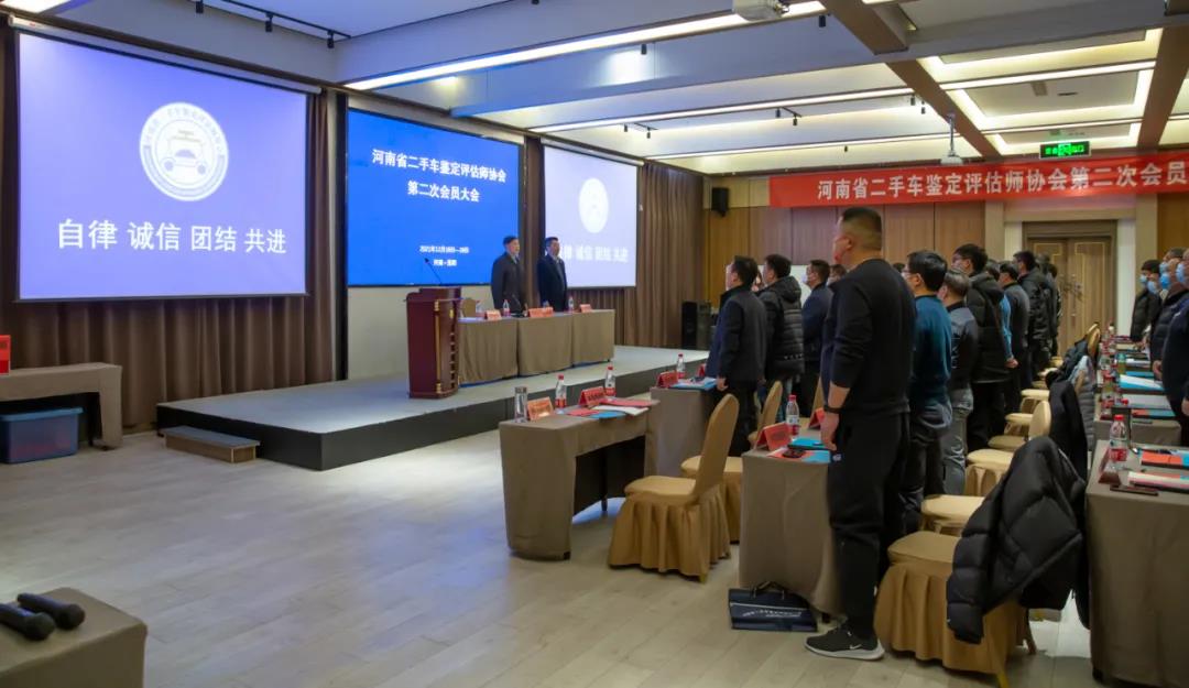 2021年12月18日,古都洛陽,風(fēng)和日暄,河南省二手車鑒定評估師協(xié)會(huì)第二次會(huì)員代表大會(huì)暨換屆大會(huì)在這里召開,來自全省內(nèi)各地市50多家機(jī)動(dòng)車鑒定評估機(jī)構(gòu)會(huì)員代表參會(huì)。全體與會(huì)人員起立奏唱國歌,大會(huì)在莊嚴(yán)的國歌聲中拉開序幕。
