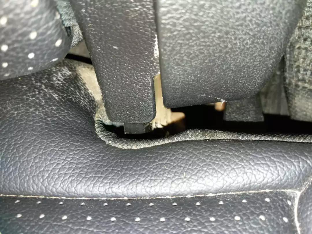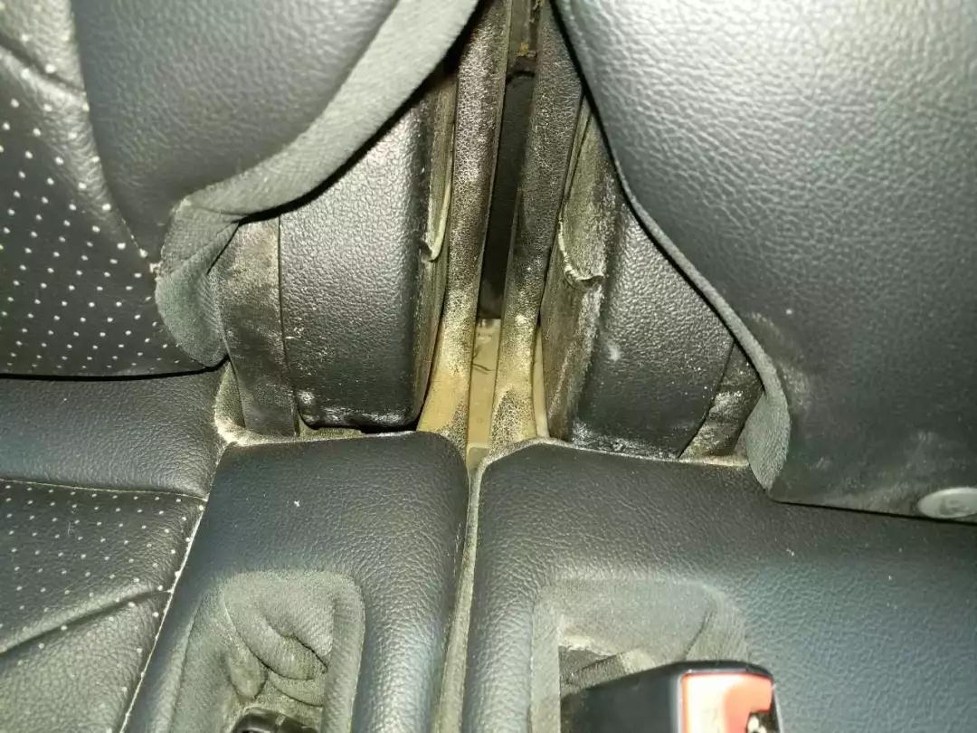座椅下部都看完了,接下來(lái)就看看座椅表面吧。就算看座椅表面,我們也得看犄角旮旯的地方,圖上的位置你明顯可以看到泥沙和霉斑痕跡;