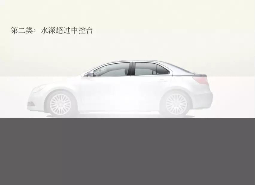 第二類:水深超過(guò)中控臺(tái),整車基本一半被浸泡在水里,評(píng)估難易程度居中;