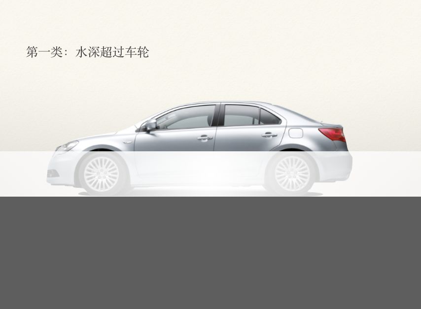第一類:水深超過(guò)車輪,這種水泡車涉水深度較淺,但實(shí)際評(píng)估過(guò)程卻比較困難;